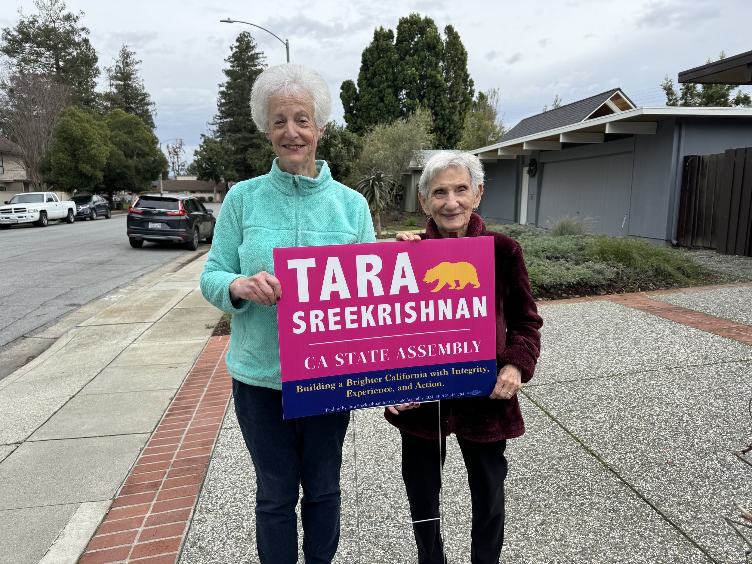Pictured above is Tara with local students and pictured below is Nancy Tivol, former Executive Director at Sunnyvale Community Services, and Susan, our incredible local centenarian!
